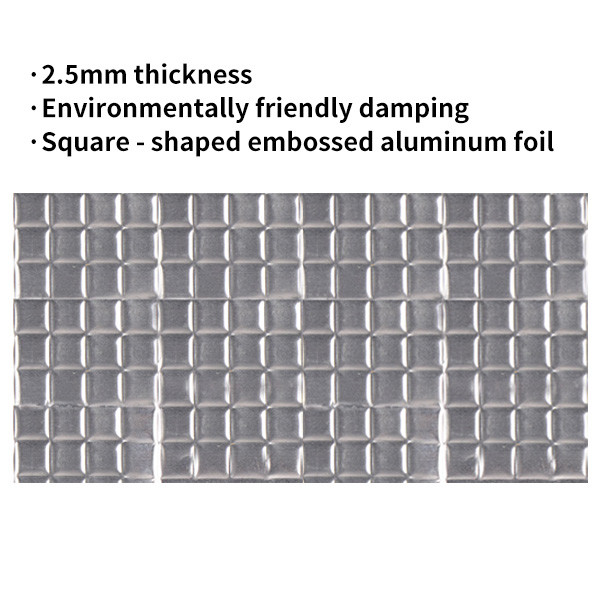 1. 2,5 mm πάχος δονητικό pad/επιφανειακό φύλλο αλουμινίου + τετραγωνική ανάγλυφη + φιλικό προς το περιβάλλον στρώμα αποσβεστικής + μονομερή χαρτί απελευθέρωσης Kraft του ελαίου από σιλικόνη (με εκτύπωση)