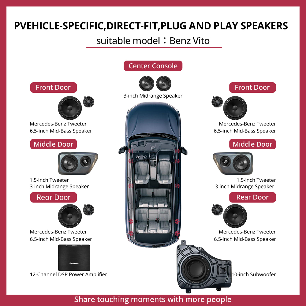 Προσαρμοσμένο αποκλειστικά για Mercedes-Benz Vitoχωρίς τροποποιήσεις, πλήρης συμβατότητα και ήχος ποιότητας στούντιο στο βαν σας!